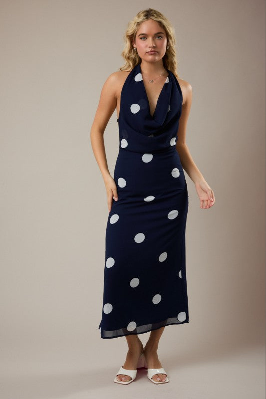 The Madison Dress brings timeless elegance with its navy backdrop and charming white polka dot pattern. This midi-length silhouette offers a flattering fit that works for both casual outings and dressed-up occasions. The classic color combination ensures easy styling with your existing wardrobe, while the playful polka dots add a touch of vintage-inspired charm. Perfect for spring gatherings, weekend brunches, or whenever you want to feel put-together and effortlessly chic.