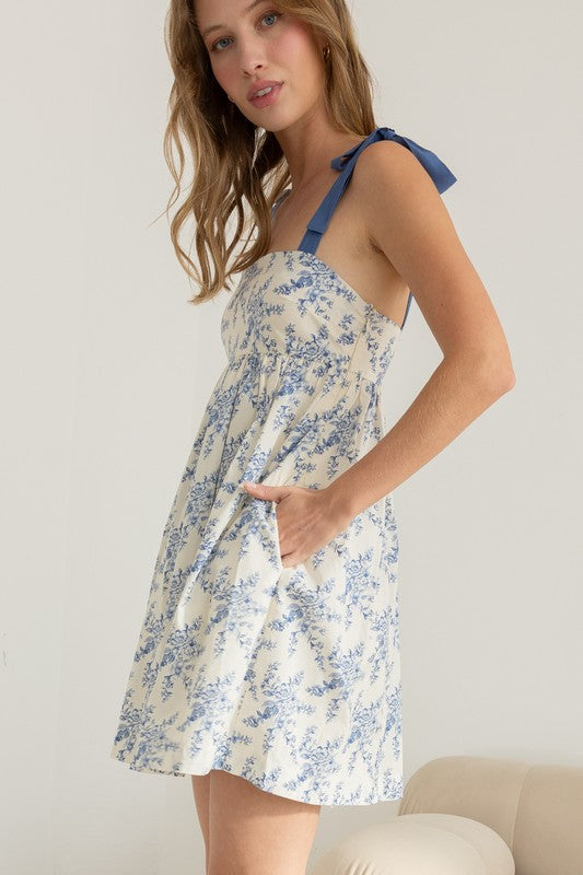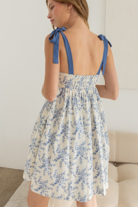 This charming floral print mini dress combines feminine elegance with a playful silhouette. Featuring adjustable tie straps and a gathered empire waist, it offers a flattering fit and effortless style. The delicate floral print enhances its timeless appeal, making it a versatile choice for brunches, garden parties, or casual outings. Key Features: Floral Print Design: Delicate patterns create a romantic and classic look. Tie-Strap Details: Adjustable straps allow for a customizable fit. Empire Waistline: Accentuates the bust and provides a flowy, relaxed fit below. Mini Length: Perfect for warm-weather occasions and casual styling. Lightweight Fabric: Comfortable and breathable for all-day wear.
