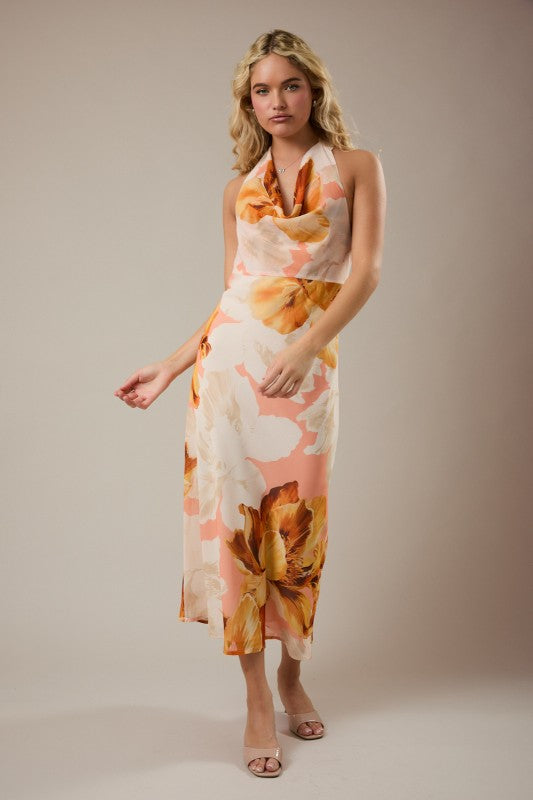 The Clara Dress is a stunning midi silhouette that celebrates bold, romantic florals. Featuring oversized blooms in warm peach and cream tones accented with vibrant orange, this dress brings effortless elegance to any occasion. The flowing midi length offers a graceful, flattering fit perfect for garden parties, weddings, or weekend brunches. Soft, breathable fabric ensures all-day comfort while the eye-catching floral print makes a memorable statement.