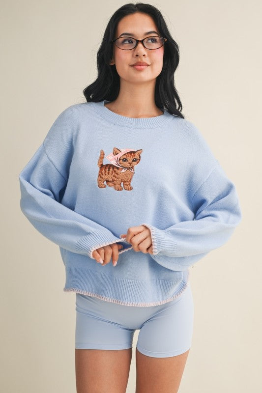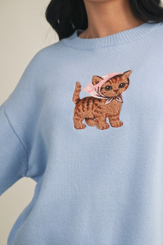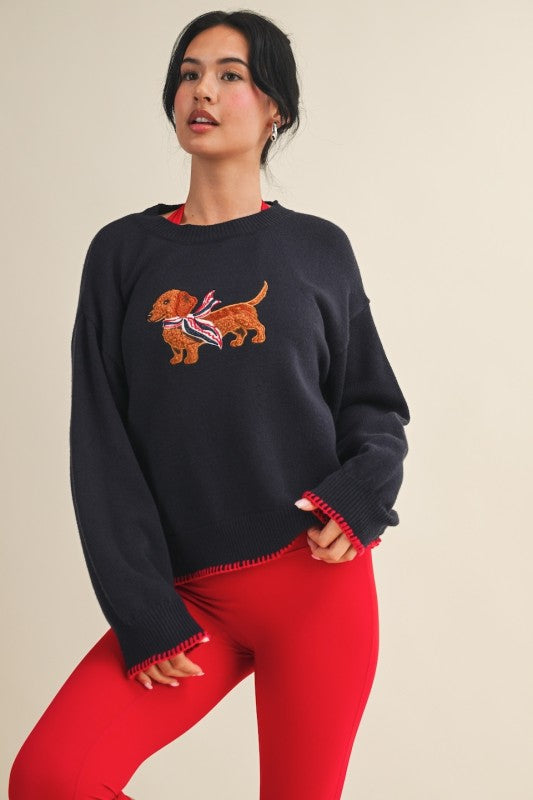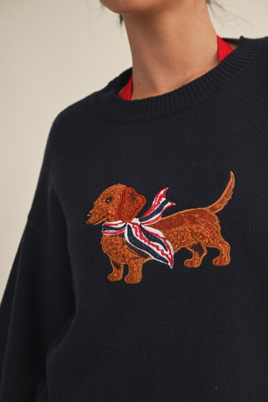 Chic, cozy, and full of personality. The Embroidered Sweater features soft, mid-weight fabric with a relaxed, versatile fit, elevated by playful embroidery a patriotic dachshund or a coastal cat bringing a touch of whimsy to classic style.